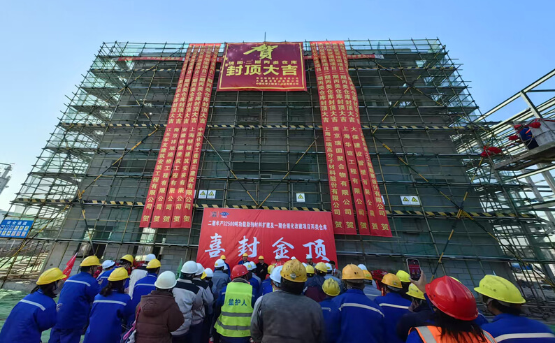 1月8日,华体会体育(中国)HTH·官方网站江苏分华体会体育(中国)HTH·官方网站承建的南京瑞固聚合物二期32500吨/年功能助剂材料扩建及一期合规化改建项目丙类仓储装置顺利封顶。